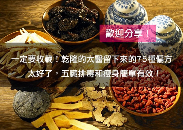 一定要收藏!乾隆的太醫留下來的75種藥方!太好了,五臟排毒和瘦身簡單有效!(請分享) (本區共瀏覽次)