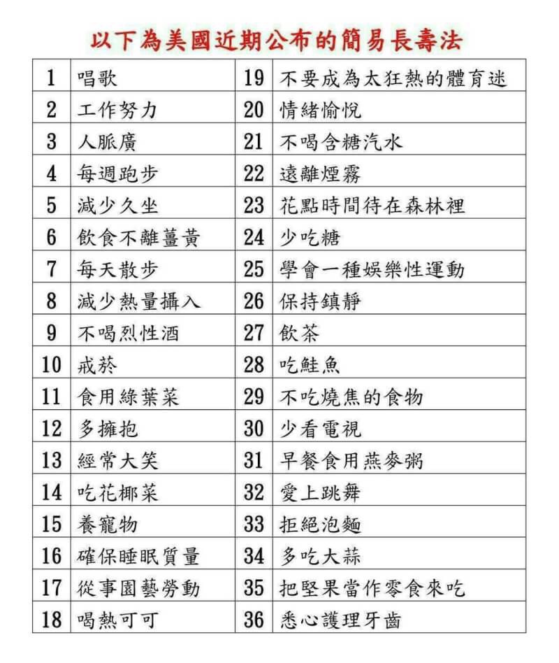 美國近期公布的簡易長壽法 (本區共瀏覽次)