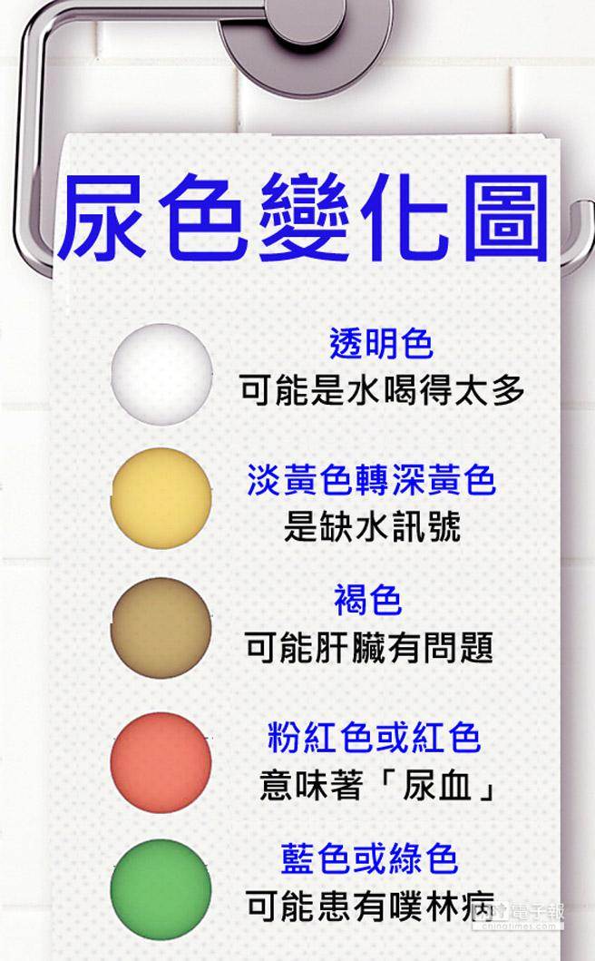 透過「尿色變化圖」,方便讓人透過觀察尿液顏色,了解你的健康狀況。(取材自金羊網) (本區共瀏覽次)