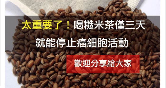 太重要了!喝糙米茶僅三天就能停止癌細胞活動 (本區共瀏覽次)