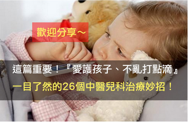 這篇重要!『愛護孩子、不亂打點滴』!一目了然的26個中醫兒科治療妙招! (本區共瀏覽次)